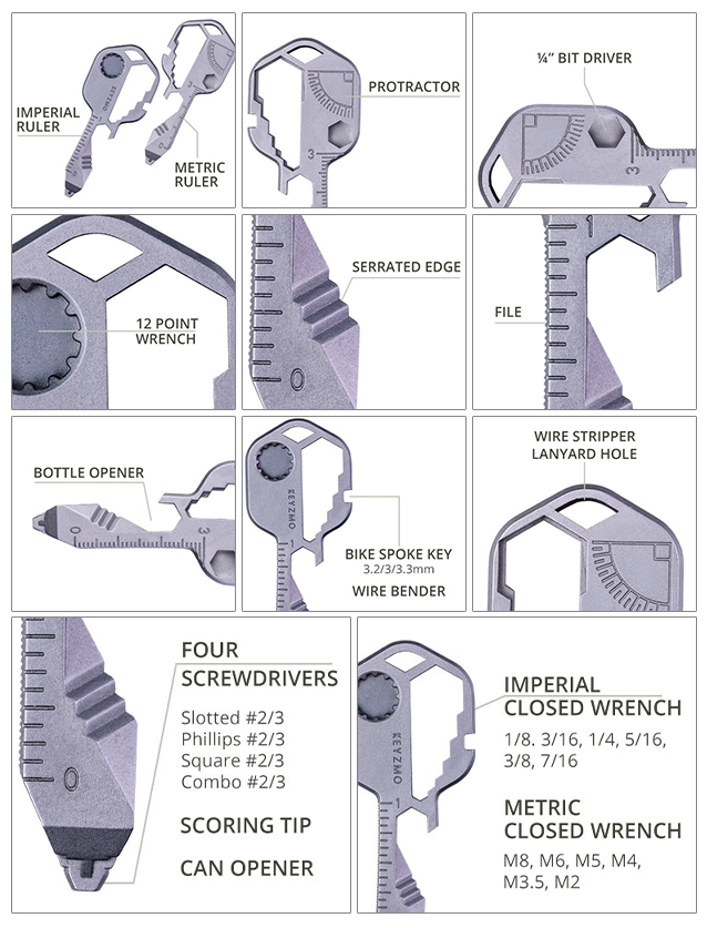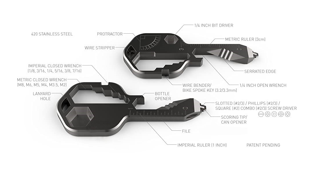The most popular & viral gadget of the year, the Top Multi Key, allows you convenience of carrying only one tool. 24 Tools In One. The Top Multi Key has an over 24+ versatile universal gadget functions. The tool key includes the function of the screwdriver, can opener, opener, the hex wrench and so on.